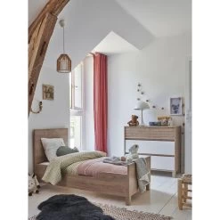 Le lit 70×140 cm de la collection Achille a été dessiné dans un style moderne et épuré, grâce à ses finitions chêne blond et des barreaux blancs.