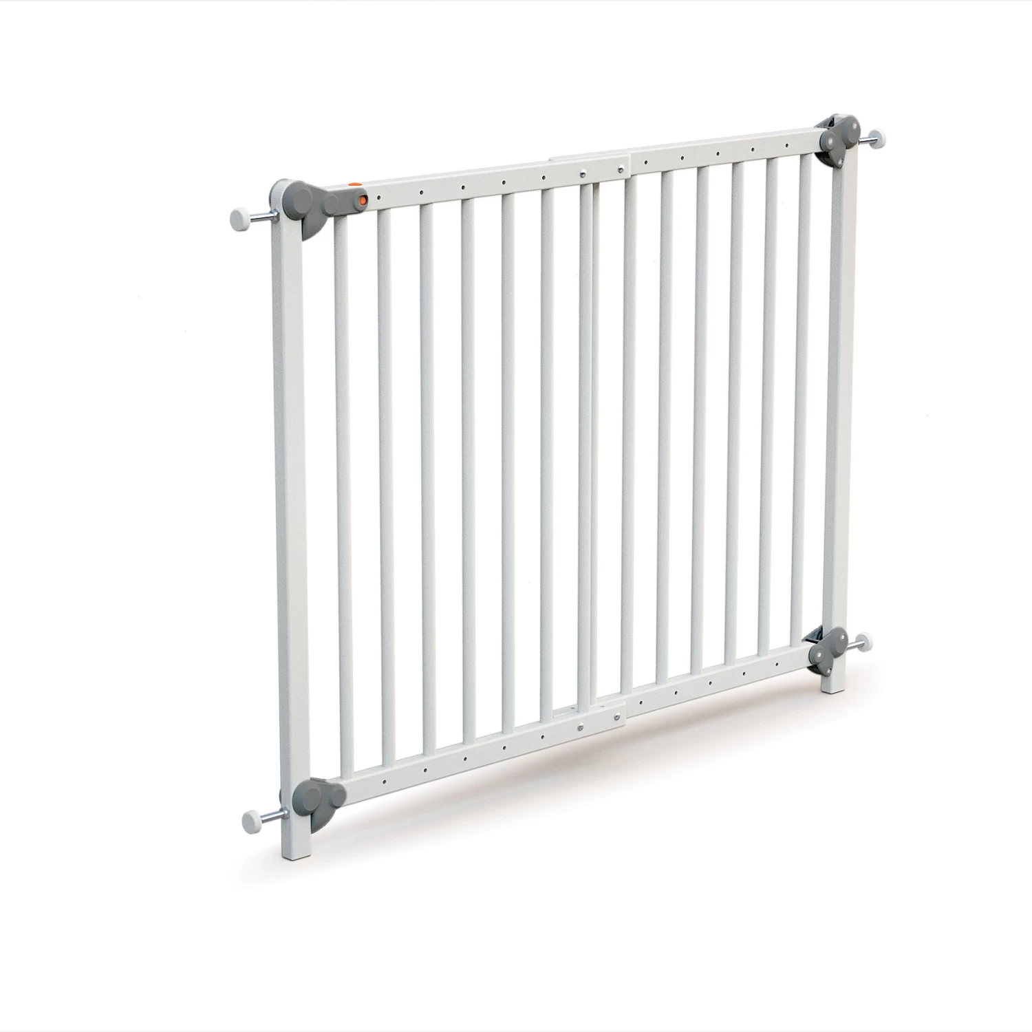 Une barrière de sécurité extensible qui pourra s’adapter aux ouvertures allant de 73 à 110 cm. Sécurité et ergonomie garanties grâce au système d’ouverture et de fermeture d’une seule main. Utilisation ergonomique et sécurisée : ouverture et fermeture d’une seule main. Installation amovible ou portillon. Produit sans peinture ni vernis : prêt à peindre et écologique.