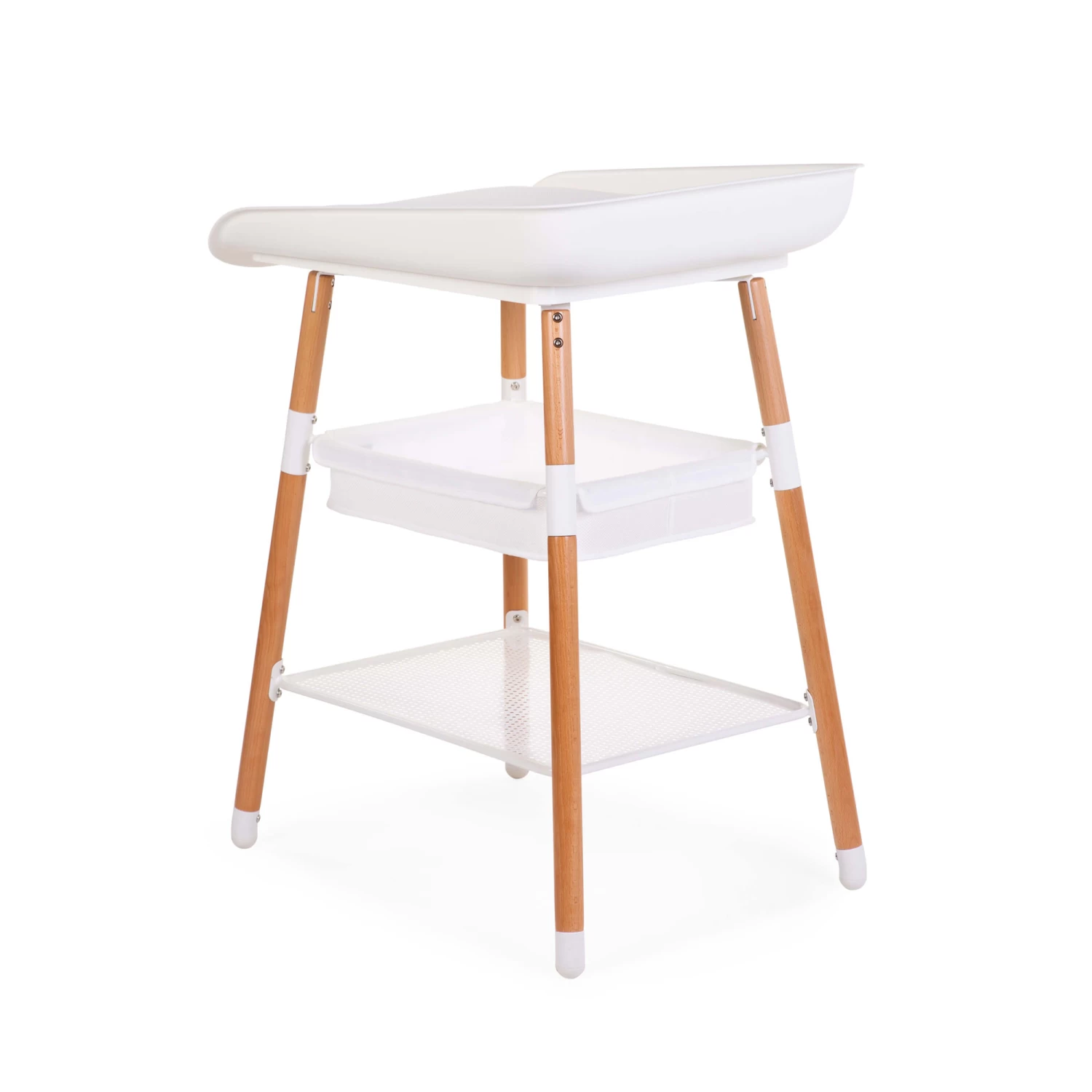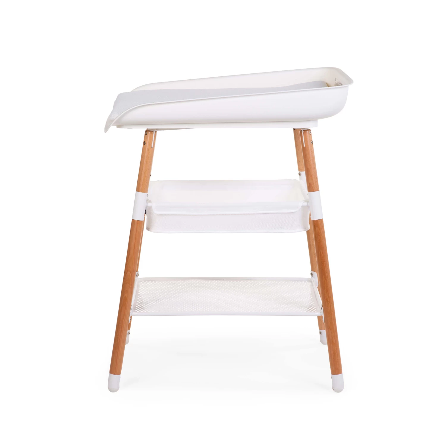 - Inclus en standard : Table à langer Evolux en blanche, coussin à langer en maille d’air 3D, panier de rangement, set d’extensions pour jambes, set de roues avec frein