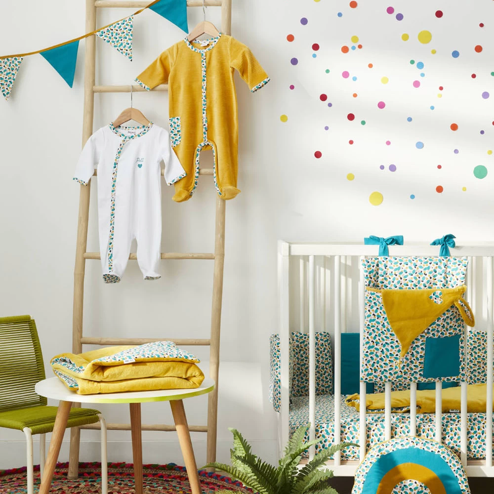 Une jolie guirlande composée de fanions en coton pour apporter une touche déco très tendance à la chambre des petits ! Cette guirlande a une longueur de 250 cm environ.