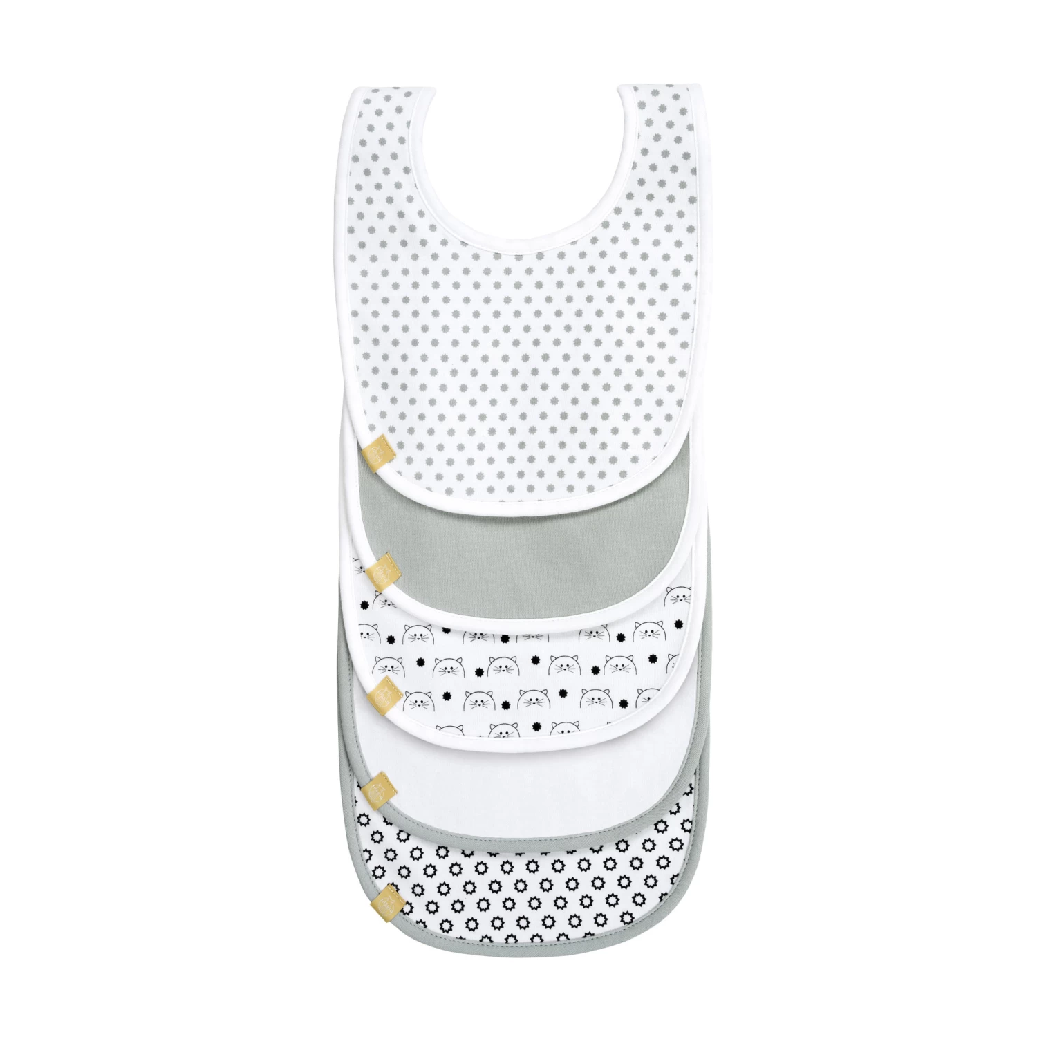 Avec les lots pratiques de 5 bavoirs de LÄSSIG, ce n´ets pas grave si les petits gourmands ne mangent pas proprement, même plusieurs fois de suite. Les bavoirs sont munis d´une fermetrure Velcro à l´arrière et sont disponibles en différents coloris, unis ou avec motifs.