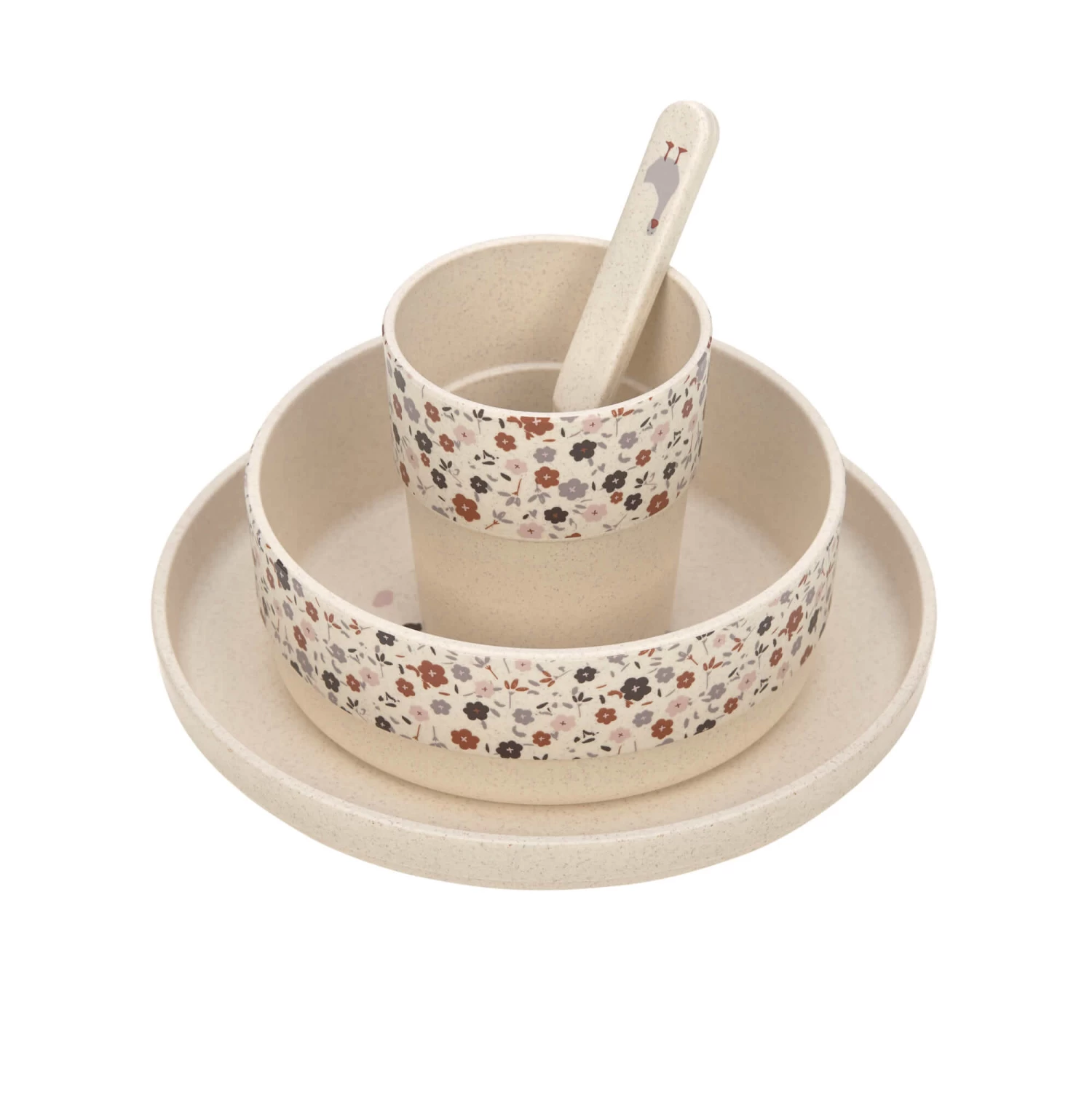 L’assiette, le bol, la tasse, la cuillère ainsi que la tasse d’apprentissage avec ses deux poignées et un bec verseur sont disponibles à l’unité.