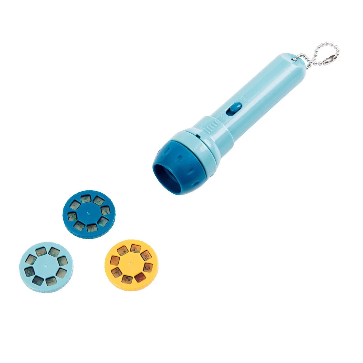 Facile à utiliser, la lampe intègre 3 disques pour un total de 24 images à projeter et 3 histoires différentes avec pour héros Olga l’oie, Chaussette le renard et Joséphine la baleine.