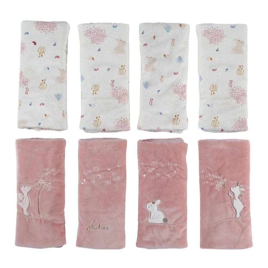 Les protèges barreaux en Veloudoux rose et imprimés nature rebrodés des personnages de la collection Lina & Joy, sont parfaits pour s’adapter aux barreaux ronds ou plats de tous les lits bébés ainsi que des parcs.