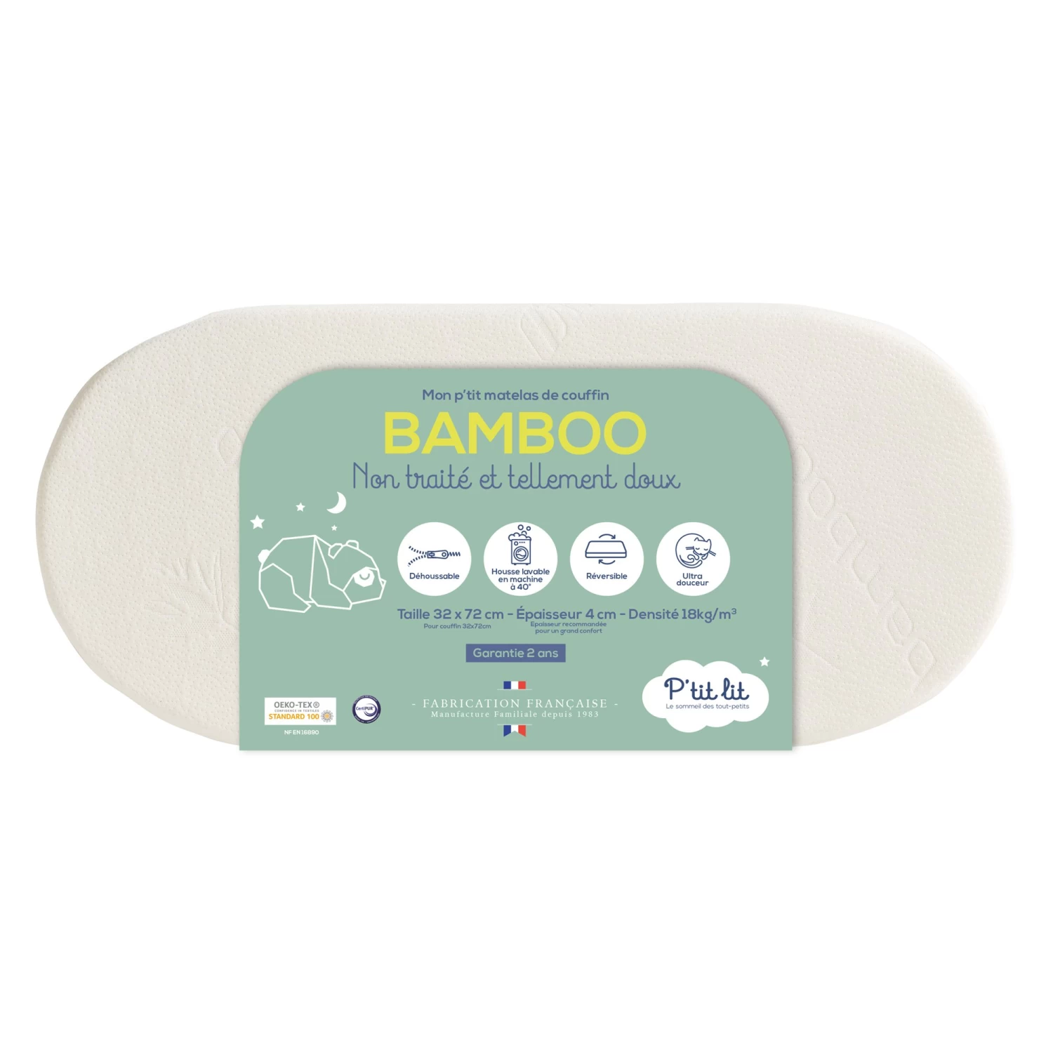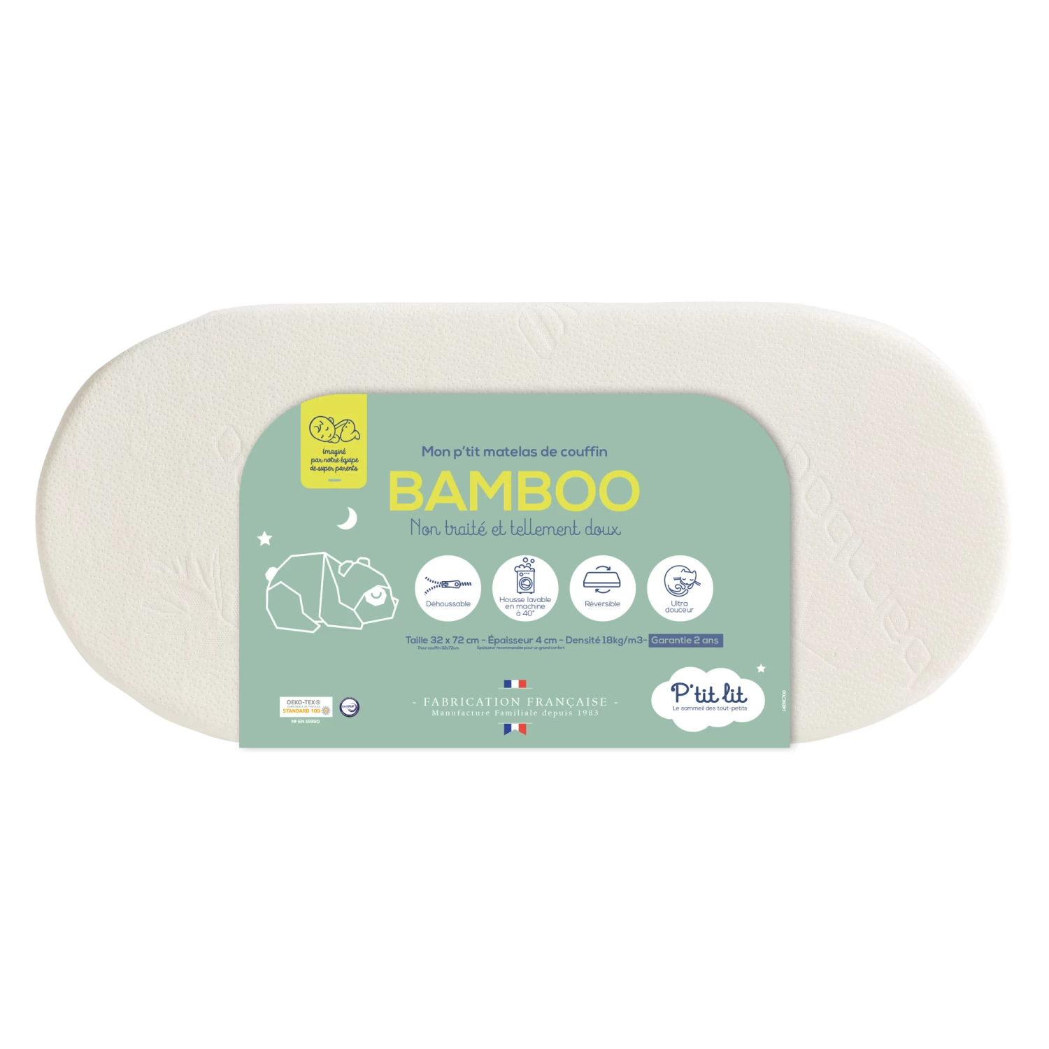 Matelas de couffin Bamboo, non traité, au toucher soyeux. Epaisseur de 4cm, idéale pour le confort de bébé. Matelas réversible, déhoussable et lavable en machine, pour une hygiène parfaite! Housse en viscose douce et soyeuse. Pour un sommeil douillet! Garantie 2 ans. Fabrication française.