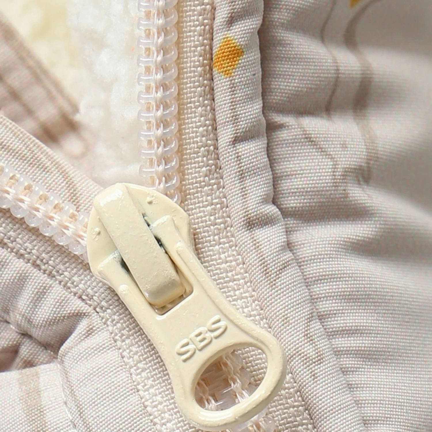 La chancelière en toile déperlante (6-36M), rembourrée de sherpa de la collection Mix & Match gardera votre petit explorateur bien au chaud lors de vos promenades en poussette.