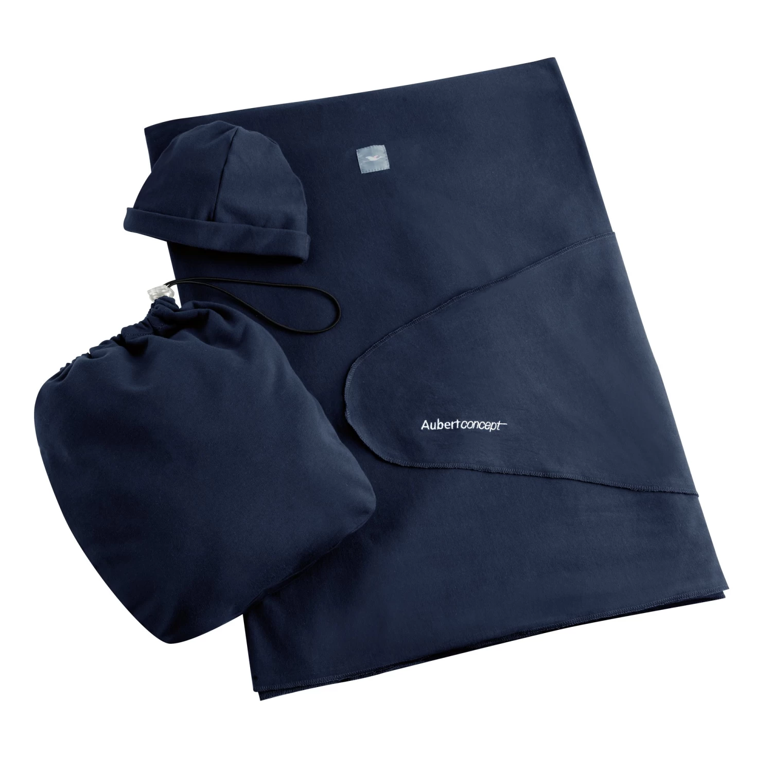 L’écharpe porte-bébé avec bonnet assorti et sac de transport inclus.