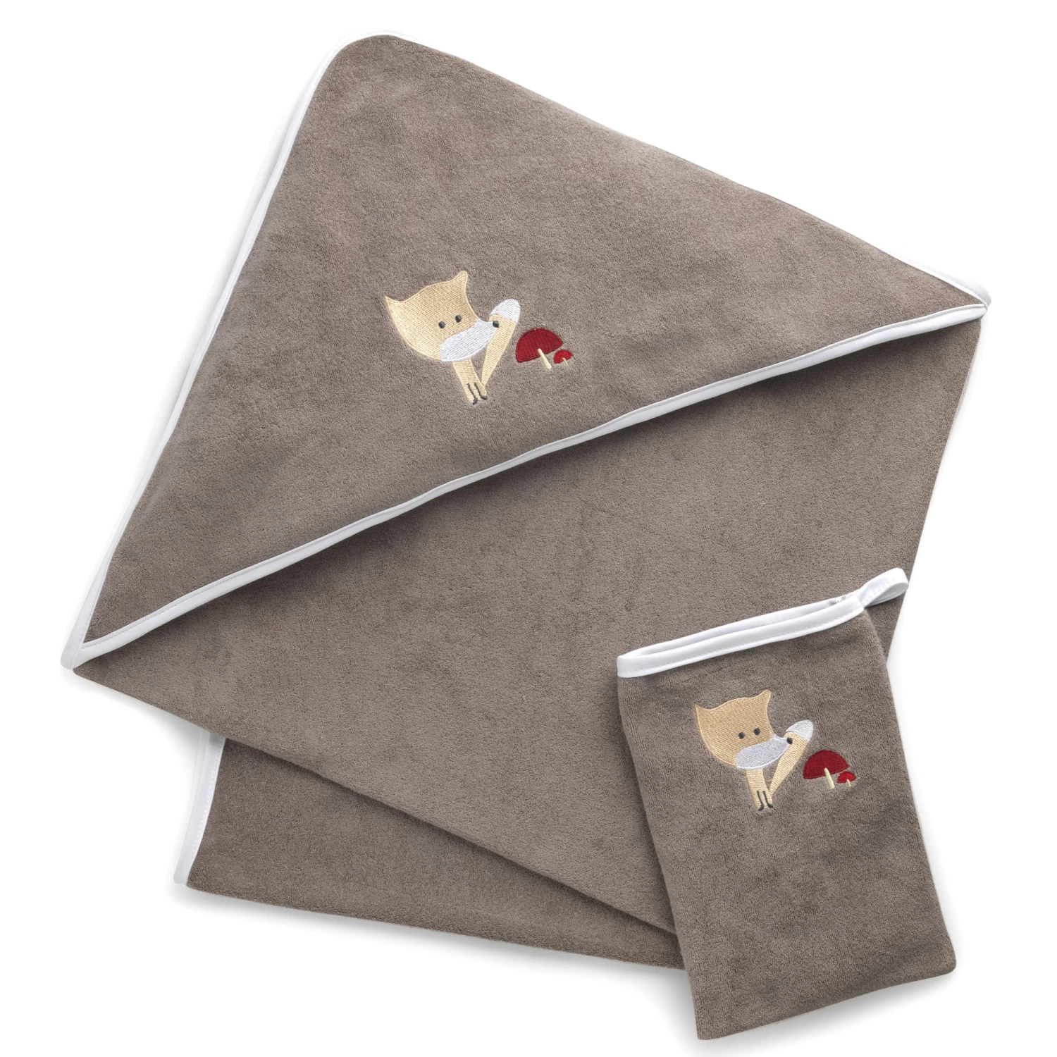 Coffrets de bain composé d’une cape de bain et d’un gant de toilette.