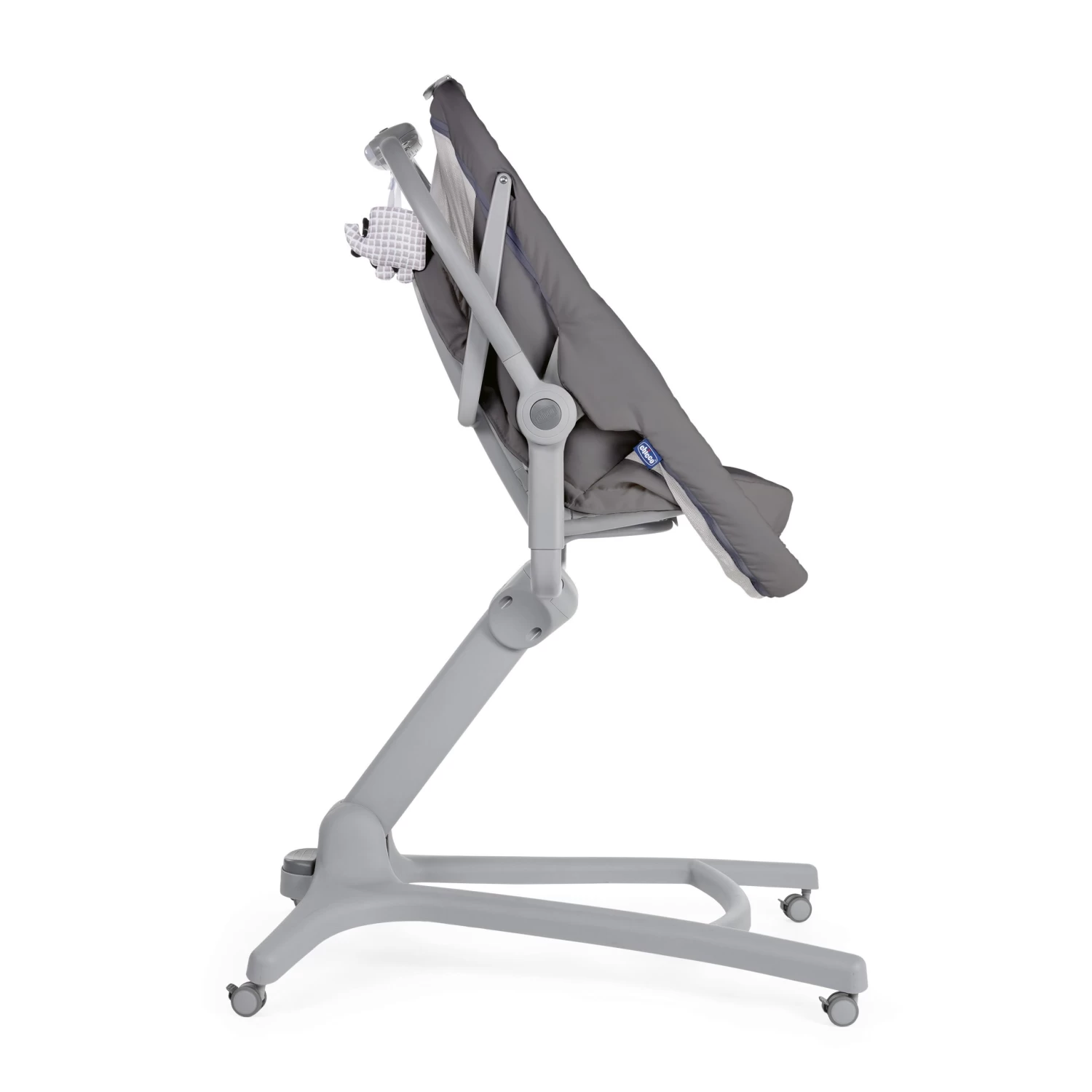 Le dossier peut être incliné sur 3 niveaux différents pour assurer le confort de bébé. L’utilisation du dossier en position inclinée peut aider votre bébé à régurgiter.