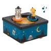 Boîte à musique aux couleurs de la gamme, illustrée d’un joyeux paysage composé de plantes, légumes et petits oiseaux du jardin. Le lapin et la tortue tournent et dansent sur la piste pour bercer et endormir bébé.